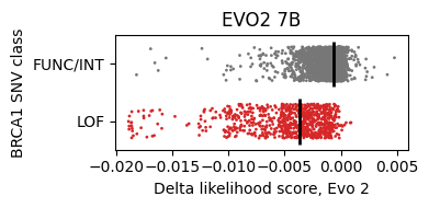 So, the notebook calculates the Evo 2 mutation (delta) score as P(mutated sequence) – P(original sequence). The lower the score is, the more likely the mutation disrupts the function of the DNA-repairing protein.